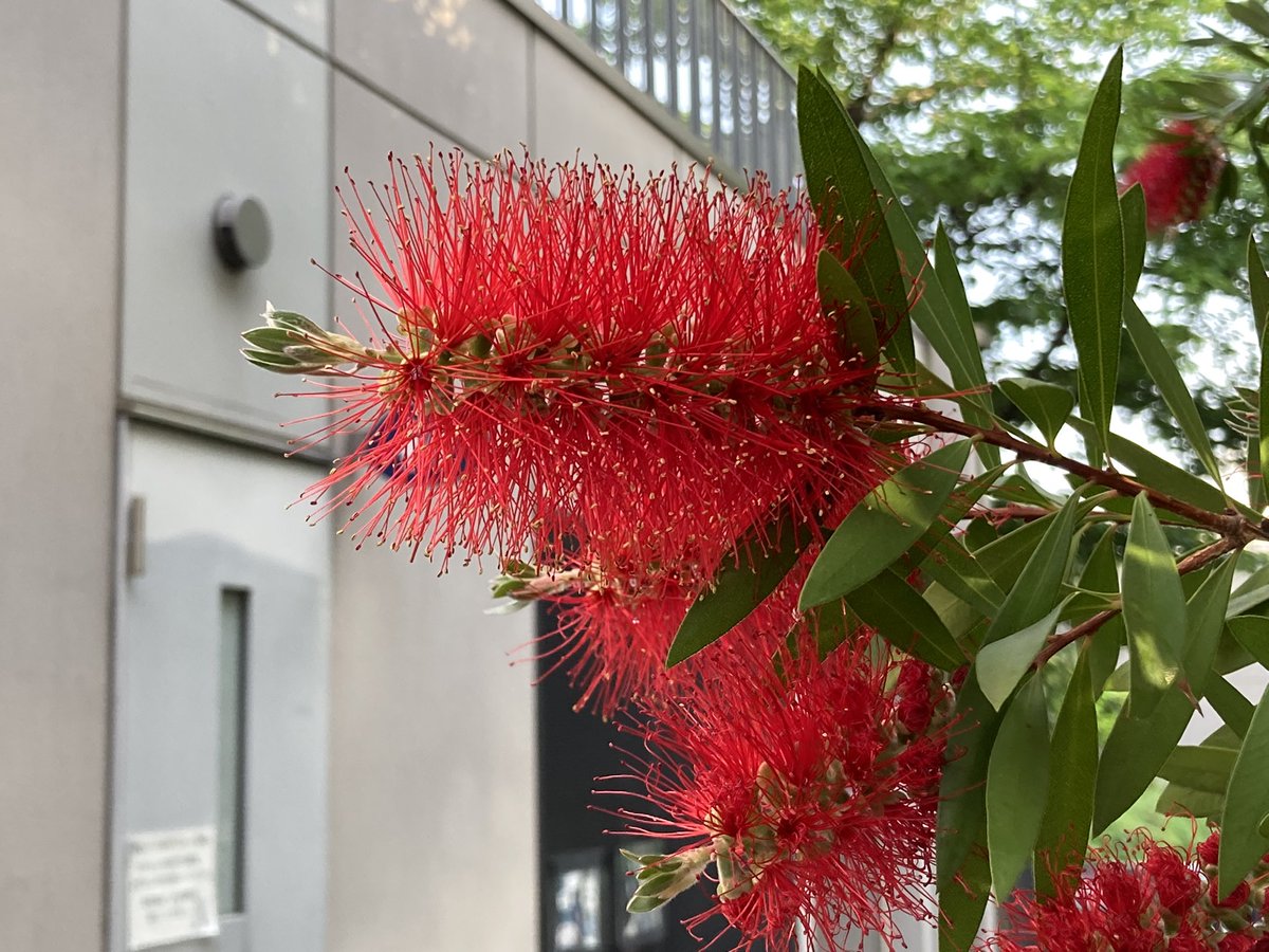 色鮮やかなブラシノキをブラシ、絵の具を使って描きました。