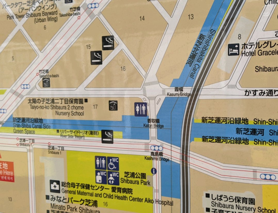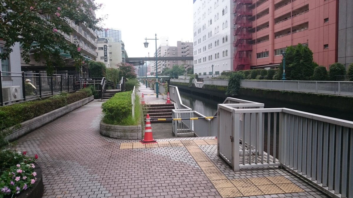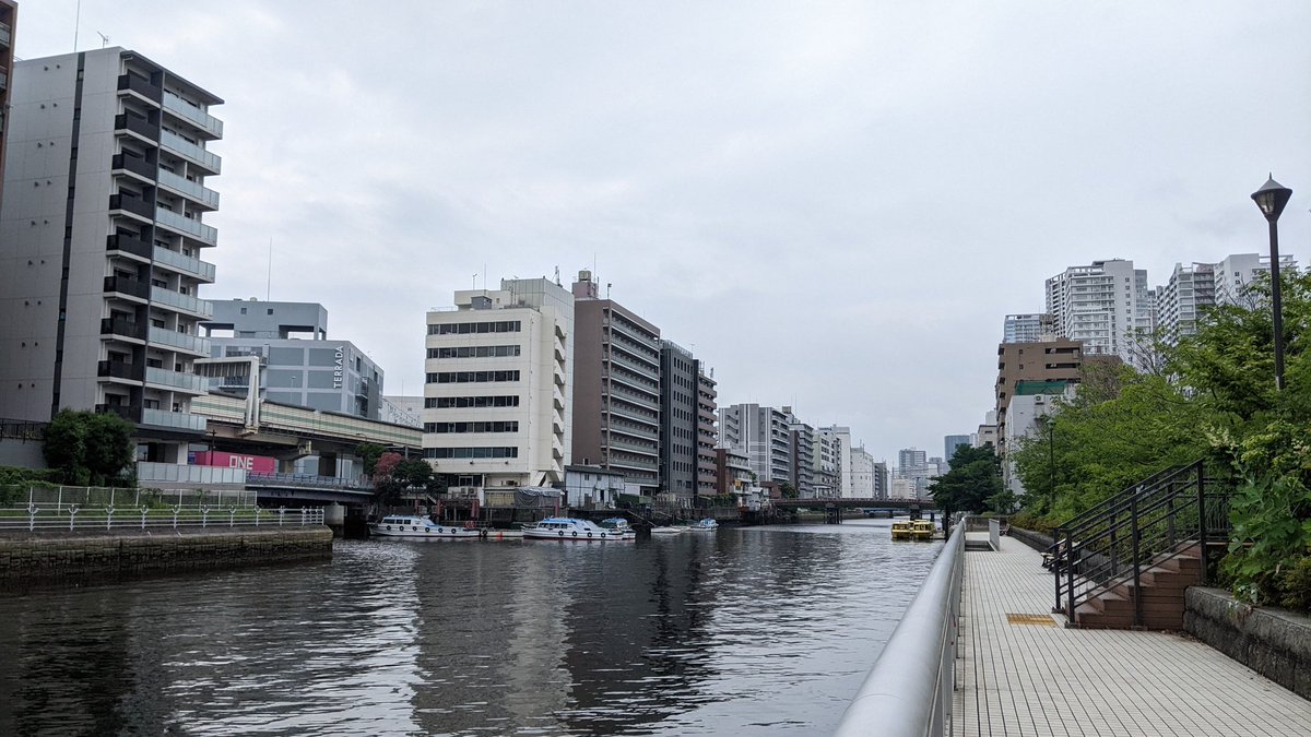 2019年5月30日14時5分。「アーバンランチ」の「M.I.ランチポート」へ向かって「芝浦運河沿緑地」を撮影しました。右側には「芝浦運河」も写っています。 -
