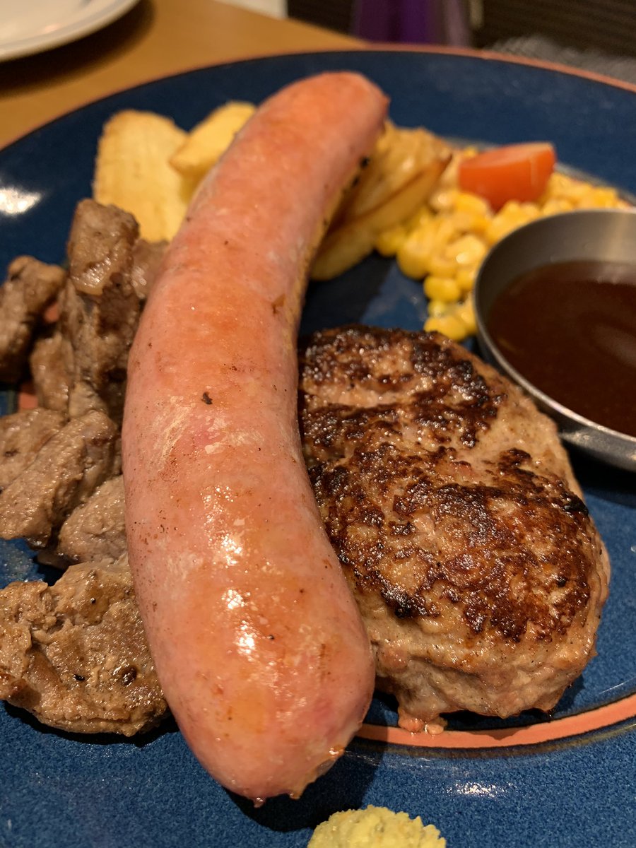 ランチでこのボリューム♪ハンバーグ、ステーキ、ソーセージが食べられるなんて最高🤤✨