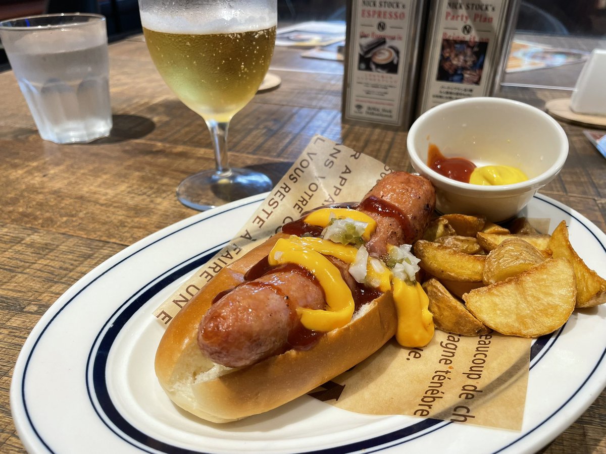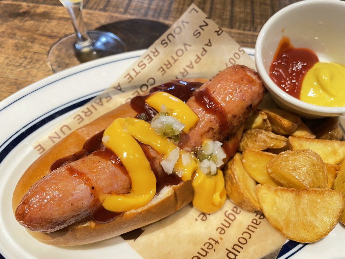 田町の #NICKSTOCK さんの極太チーズドックというホットドッグ🌭
