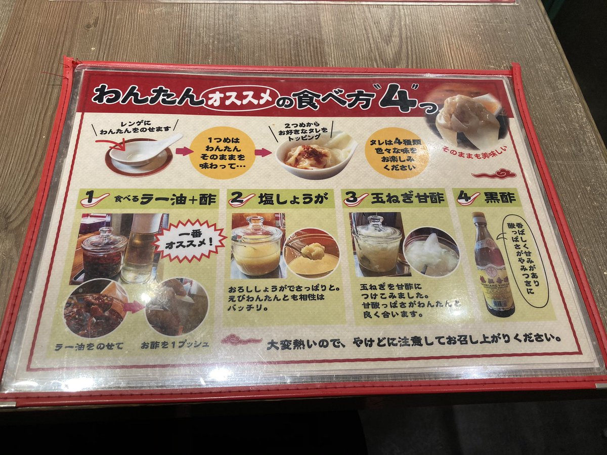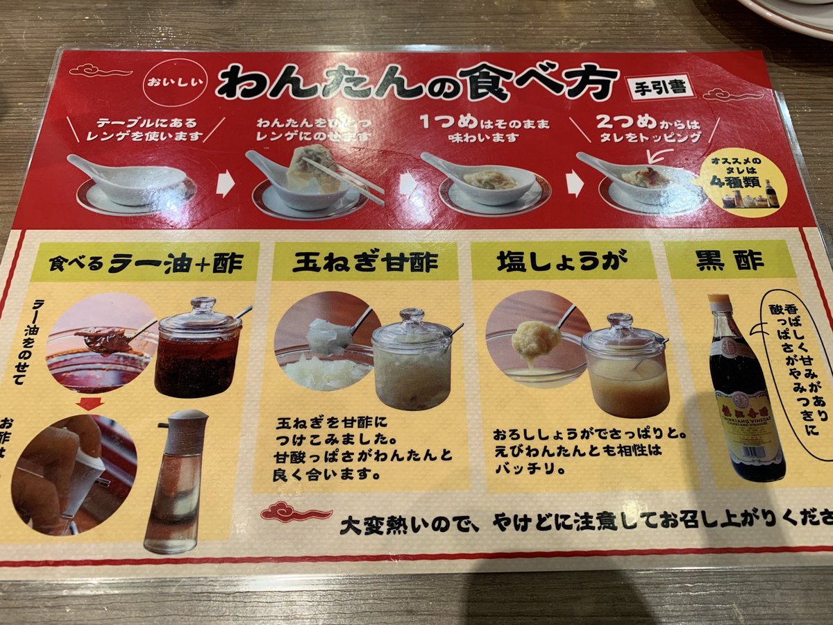 ワンタンをいろんなタレで食べるスタイル。わいはネギタレとレモンタレが好き