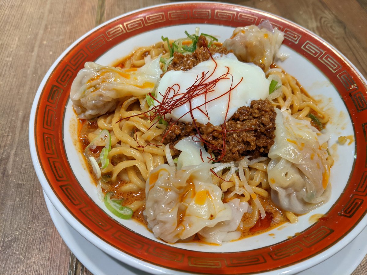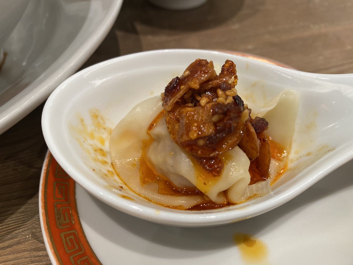 これでもかってくらい肉ぎっしりのワンタンが入ってて、食べるラー油とかお酢玉ねぎとか味変も豊富で890円という高コスパでめっちゃ美味しい!