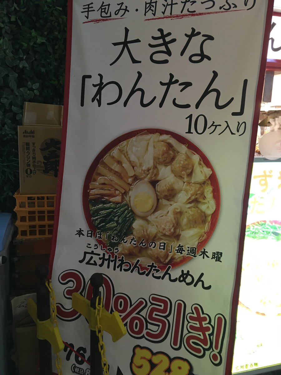 初めての広州市場、田町店にてワンタン麺。自分が知ってるワンタンより何倍も美味でした。たまたま木曜日でワンタン10個も入った写真の麺が580円でした。(右はセットの魯肉飯170円)活気のあるお店でスタッフさんも楽しそう。マジでまた行きたい。 pic.twitter.com/RDw2nxo18d 2022-07-28 21:09:00