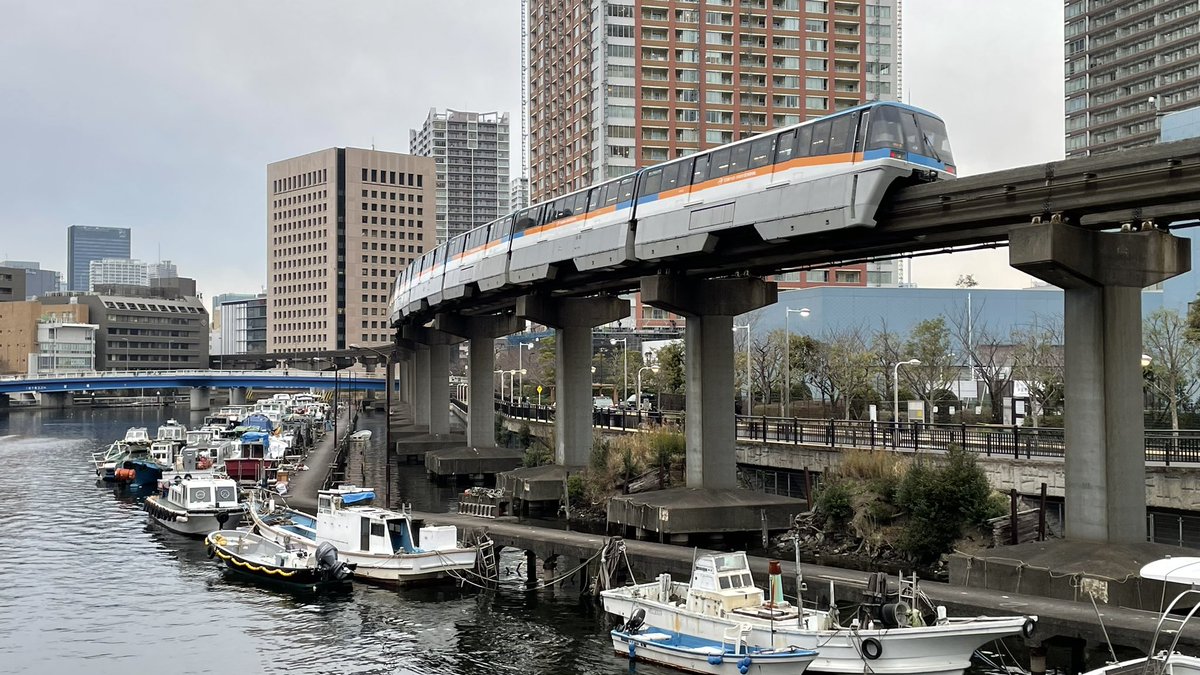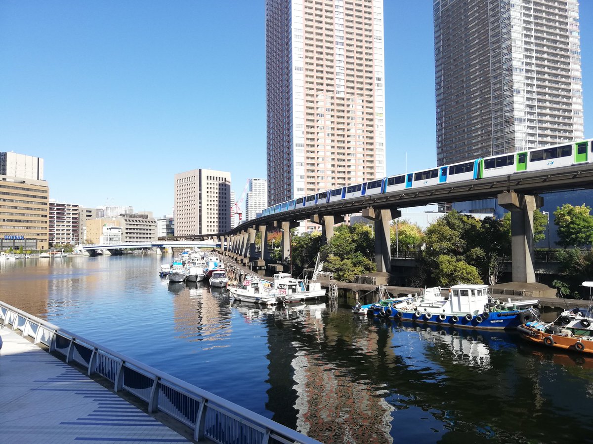 昨日の動画の最後に見えてた夕凪橋を反対側から。右手奥にはやっぱりカーヴ萌えモノレール。