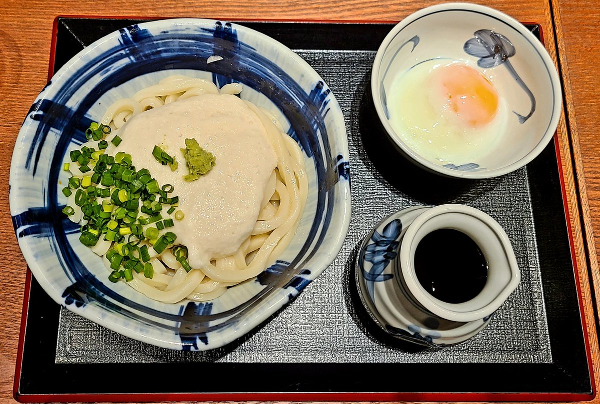 [冷やし山かけうどん 温泉卵付]コシがしっかりしてるから噛み応え抜群!