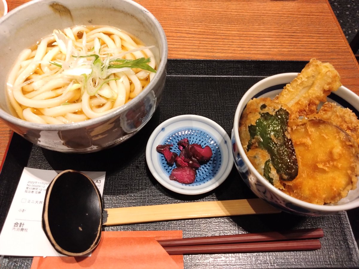今日のランチは芝浦で讃岐うどんと天丼のセット!