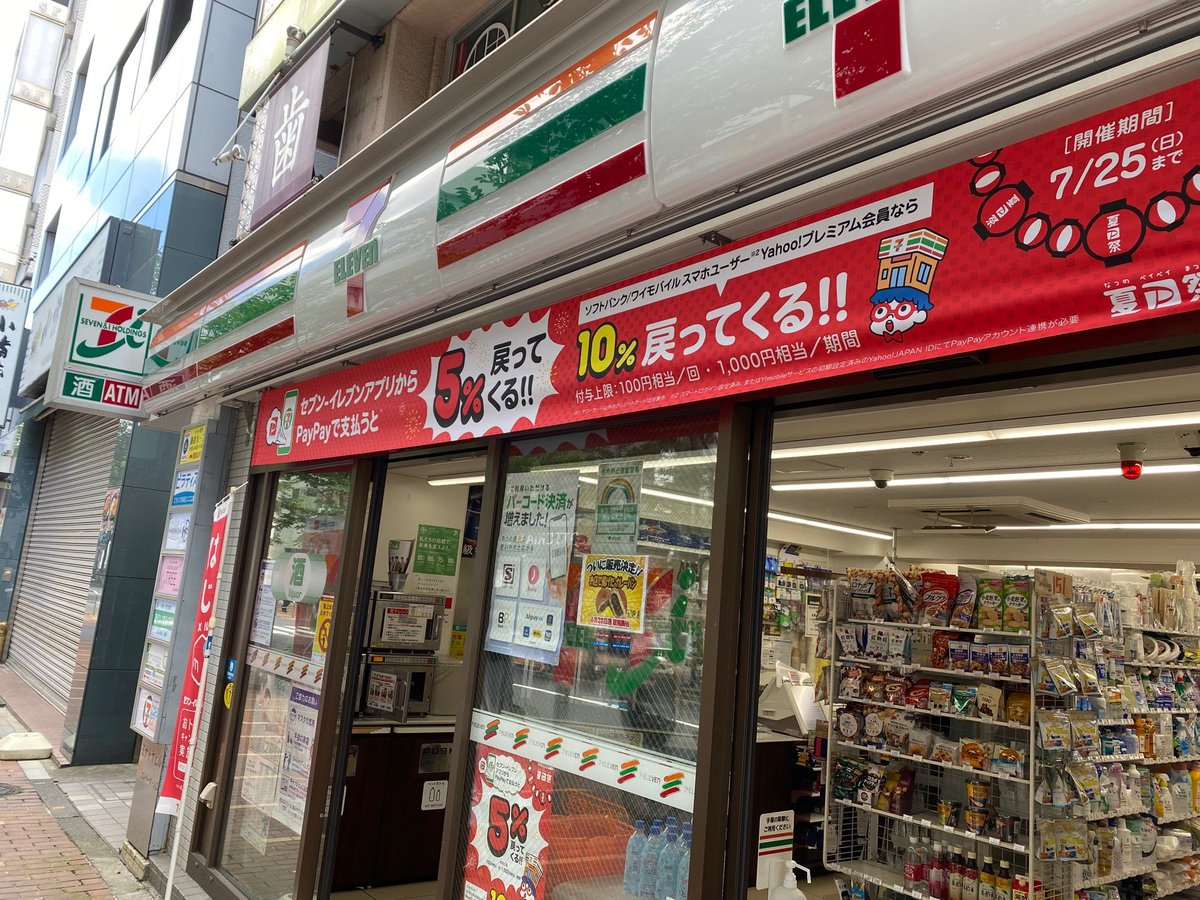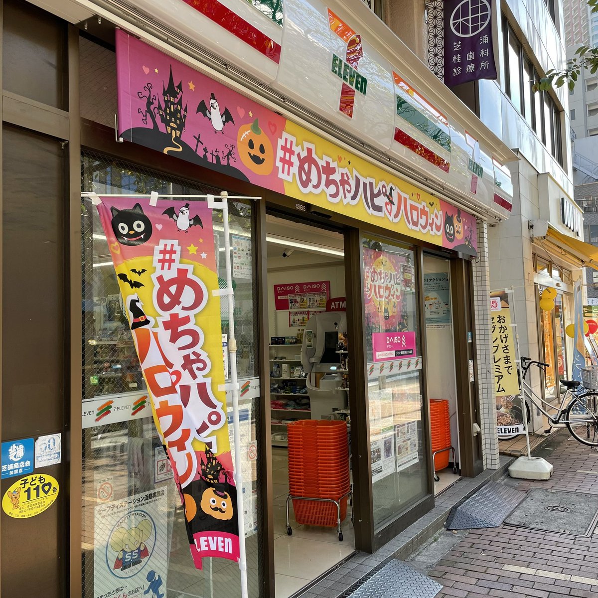 2011年9月13日15時18分。「なぎさ通り」を撮影しました。「名代 富士そば 田町店」「後楽そば 田町店」「串焼居酒屋 串八」なども写っています。 -