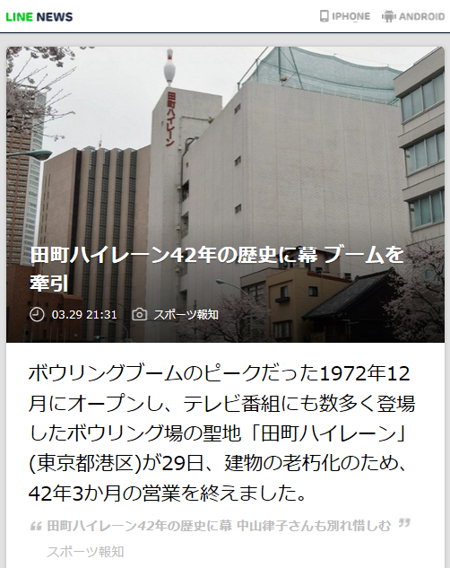 超新星が女子レベルのボウリング大会をした思い出の田町ハイレーンは先日閉館したよ← pic.twitter.com/NLaDzqJmxh 2015-04-03 20:52:00