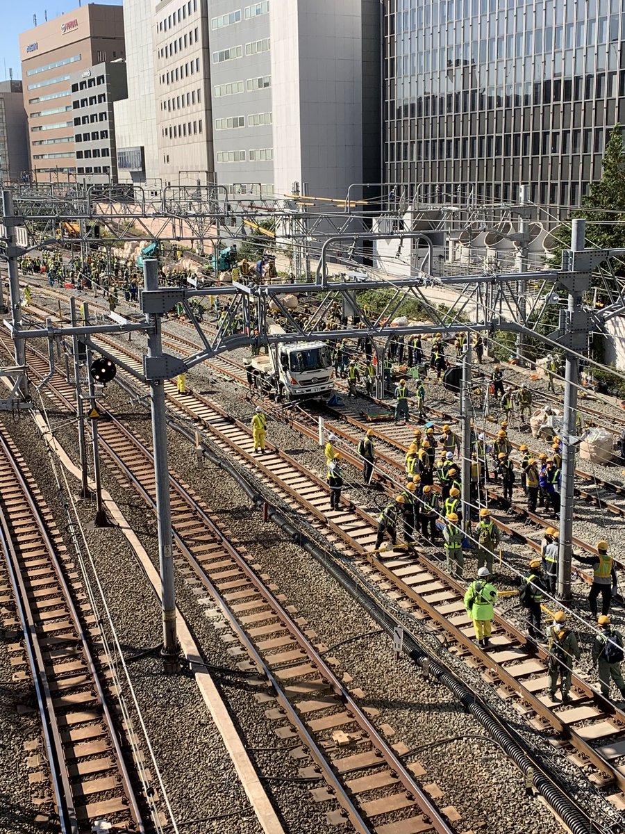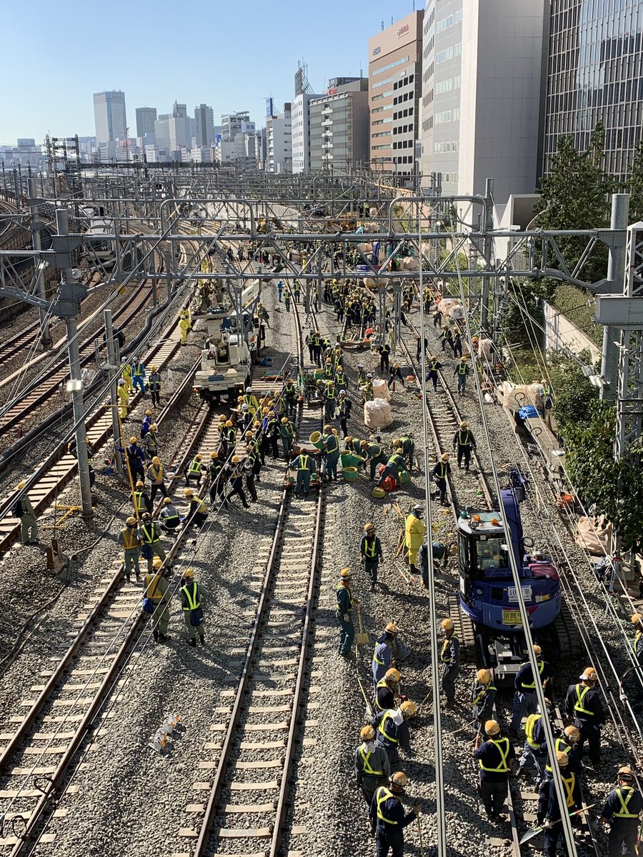 札の辻橋より線路切換工事現場。既に京浜東北線北行きは切換済。作業員の数もすごい。 pic.twitter.com/ukHVPbxRSA 2019-11-16 09:01:00