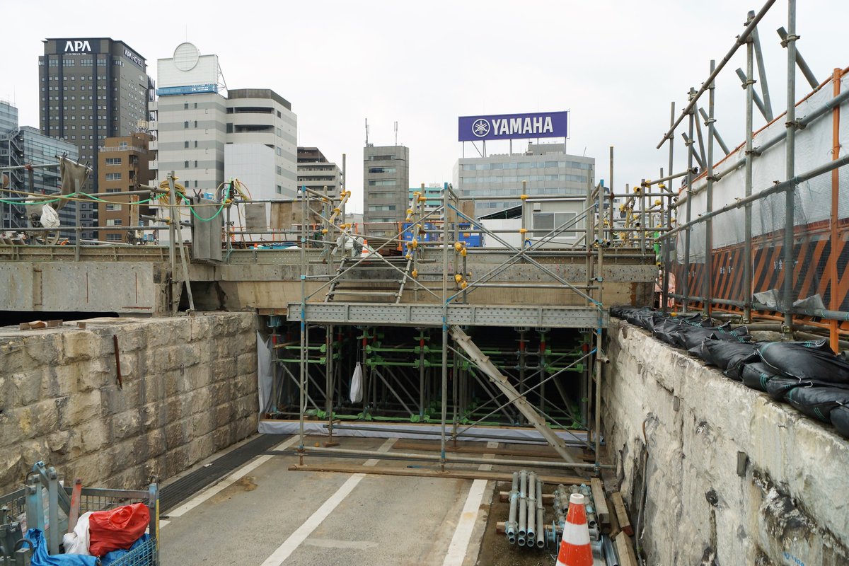 東京鉄道遺産、高輪築堤・高輪橋架道橋下区道。菅総理の視察や国史跡指定等で、今後の進展に期待したい所ですが、6月1日㈫から更なる工事開始の為、第一京浜側出入口は江戸時代、伊能忠敬が日本地図作成の際、測量の起点にしたと言われる高輪大木戸跡の石垣前からとなりました。 pic.twitter.com/2X6YPQjkzD 2021-06-01 22:00:00