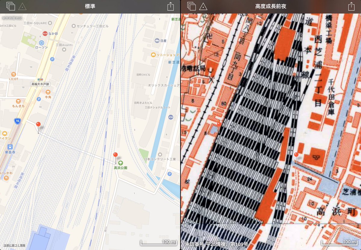 まあゲートウェイ駅近くのいわゆる提灯殺しのガードこと高輪橋架道橋も車町河岸に繋がる運河(というか海の埋め残し)だったわけで。(画像出典は東京時層地図より) pic.twitter.com/s5aeSbmaO5 2020-03-14 12:16:00