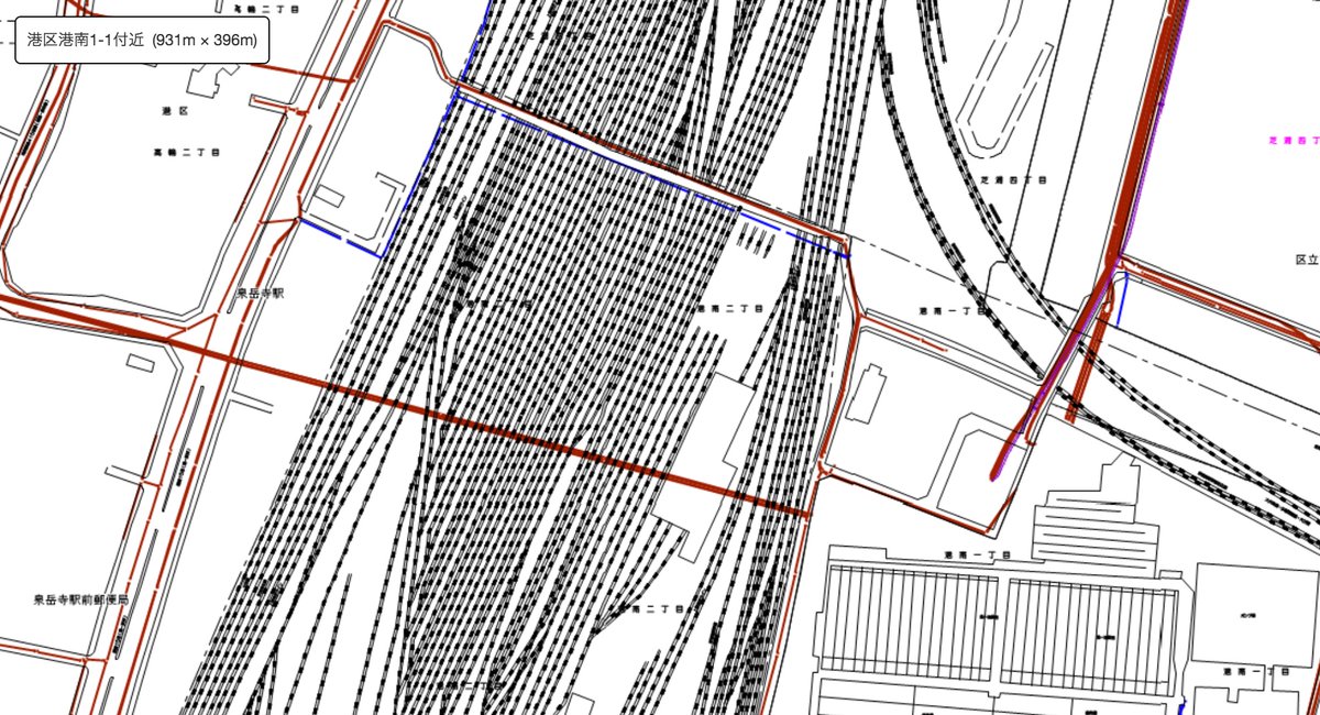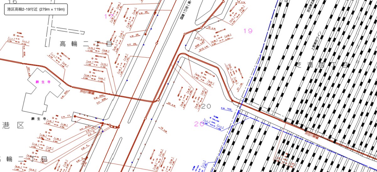 ちなみに港区公式の図面でいうと、経路は元々の水色から現在は青に変わったってことで。今の青から赤への切替は、予定通りならば 6/1 pic.twitter.com/hfYfJLdBe3 2021-05-16 11:23:00