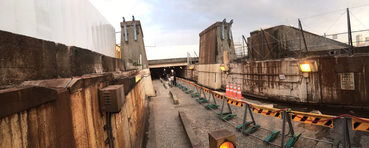 高輪ゲートウェイ駅の工事で通行できなくなる前に行っておきたかった、高輪橋架道橋。海抜が低いため建設当時の技術では排水の問題で深く掘ることができず、「(タクシーの)提灯殺し」の異名を持つ高さ制限1.5mの低い通路になってしまったとか。 pic.twitter.com/xXOTwEEz9A 2018-12-09 02:56:00
