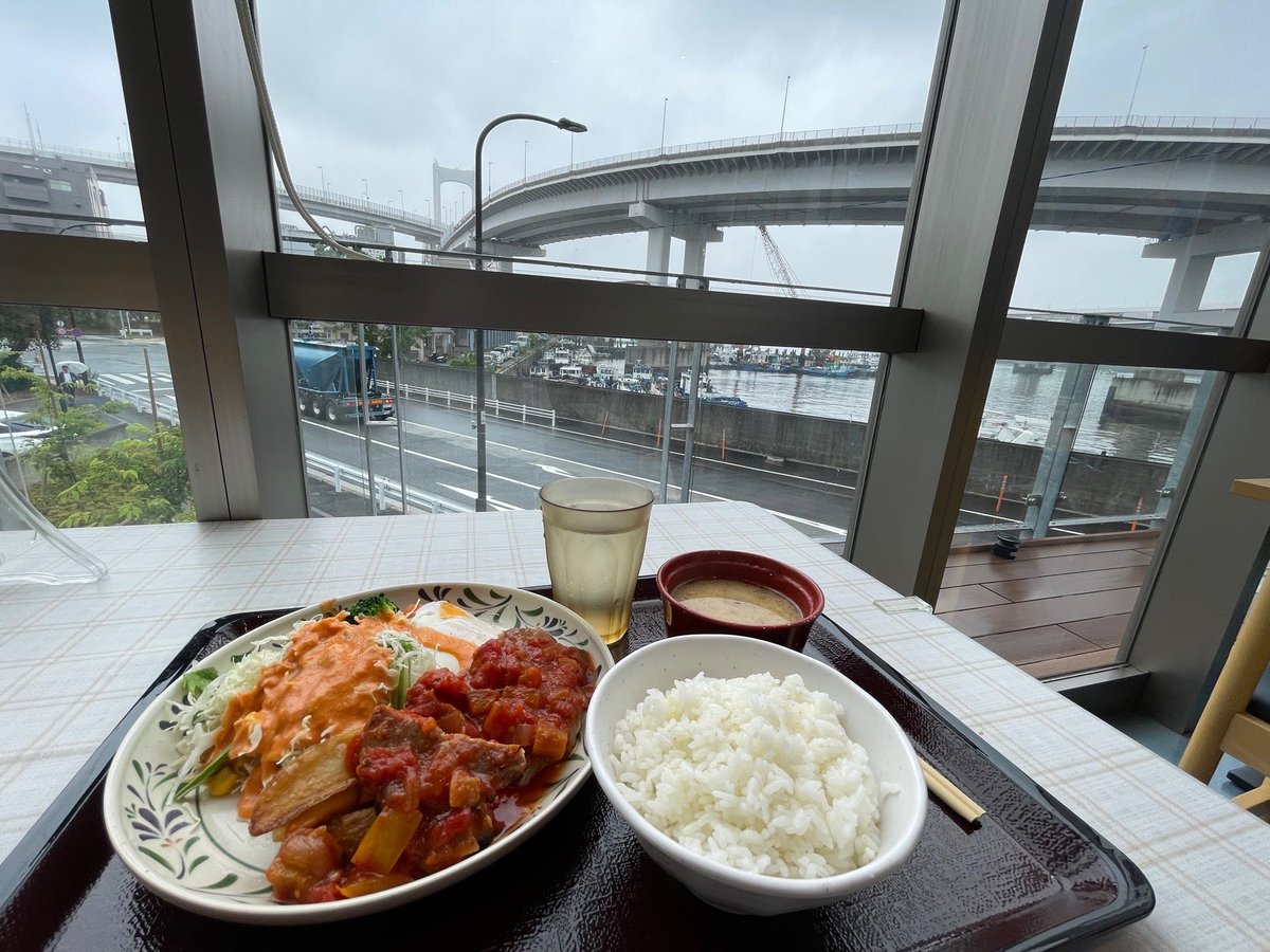 今日で芝浦埠頭のお仕事が終わりです。レインボーブリッジ橋下の湾岸食堂本店でランチ😊